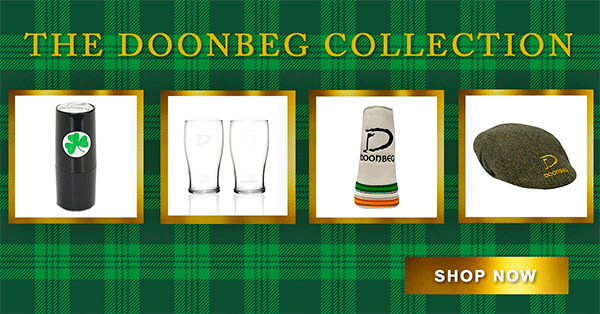 Friend, Celebrate St. Patrick's Day in traditional Irish tyle with our Doonbeg Collection that highlights the property's Irish heritage. The luck of the Irish will be upon you with the signature Doonbeg Pub Glasses, handmade Doonbeg Tweed Flat Cap, authentic Doonbeg Tri Collection Putter Cover, and lucky Shamrock Ball Stamp.