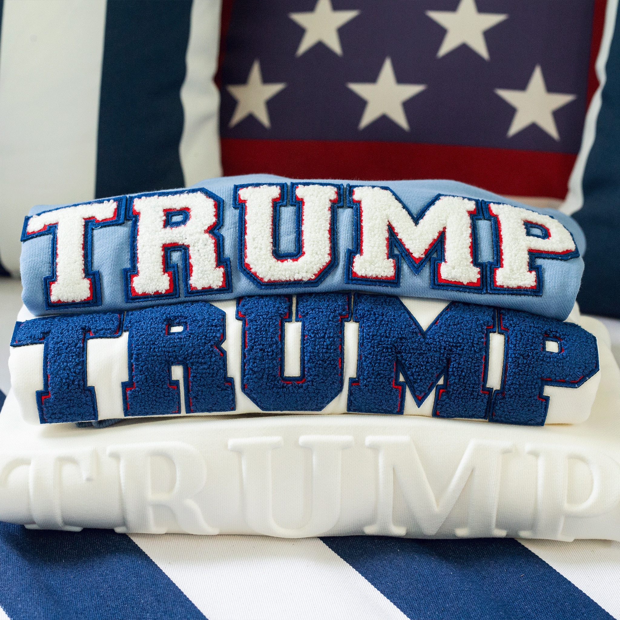 The TRUMP Chenille Crewneck is the perfect year round addition to your wardrobe. This style has an oversized fit that's made for everyone. With our retro varsity applique, this sweatshirt has a timeless classic heritage look. Feel cool and comfortable while looking sporty and fashionable.